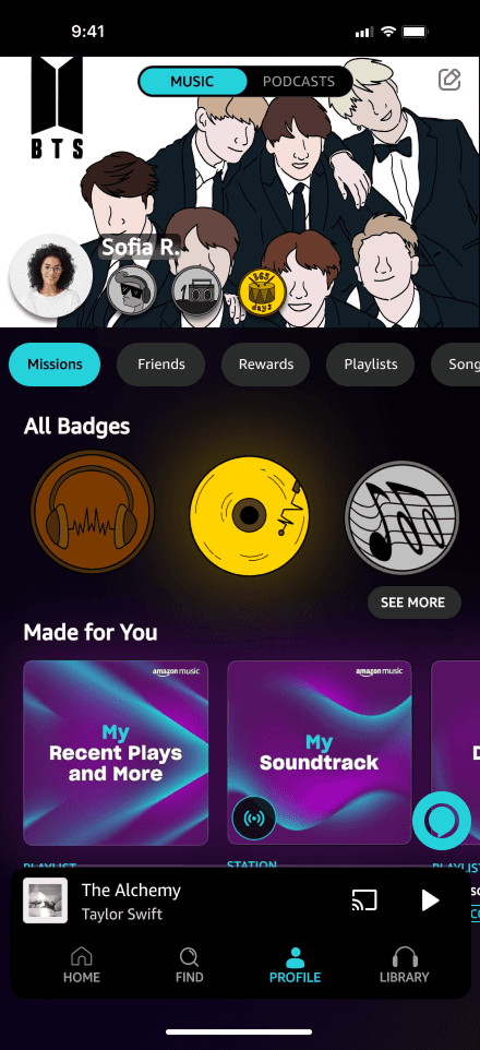 A high fidelity prototype that presents a gamified and personalized user journey for Amazon Music.